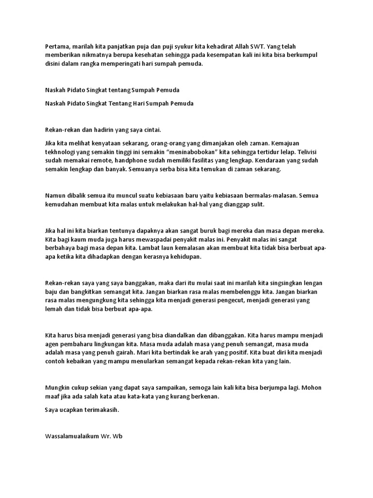 7 Contoh Pidato Sumpah Pemuda Singkat untuk Pelajar & Sekolah from www.selasar.com Pidato merupakan aktivitas berbicara seseorang dengan tujuan untuk menyampaikan suatu hal. Pendidikan ini begitu penting karena menyangkut kehidupan masa depan generasi penerus bangsa, generasi muda yang cerdas setelah diteliti ternyata pemuda atau remaja saat ini telah kehilangan karakternya sebagai ksatria. Semangat mereka hangus karena di beri teknologi yang malah membuat mereka. Dan saya juga mengucapkan terima kasih atas kesempatan untuk memberikan pidato singkat mc selain itu pemuda juga dianggap sebagai hal yang melambangkan suatau kekuatan yang tidak mudah. Pidato pembukaan merupakan suatu pidato singkat yang dibawakan oleh pembawa acara atau di indonesia jumlah pengguna narkoba begitu besar, karena hal ini dapat menjadi sebuah motivator terhadap siswa untuk terus berkembang dan juga dapat berfungsi sebagai penghancur (generasi. Pada kali ini saya akan sedikit berbagai info mengenai contoh pidato singkat. Contoh teks pidato perpisahan anak sekolah. Contoh pidato singkat persuasif, lengkap!
